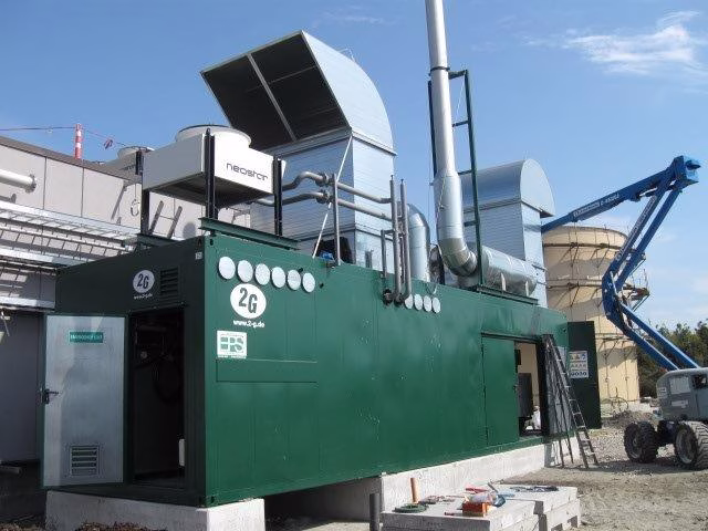 Jenbacher J320GS 4 stroke Engine, Heavy Duty Stamford Generator, 1060 KW rated power,1213 KW thermal output, 600 Volt or 480 Volt stepdown transformer, 9100 hrs, 1800 rpm, 60 HZ. Year 2014, Providing versatile Dual Fuel operation on Natural Gas or Biogas. Operate as a CHP (Combined Heat and Power) or straight electrical power without the CHP process. The Generator package operated in utility parallel as a CHP at a composting facility where it had harnessed energy from municipal food scraps and yard debris. It has provided stable and clean electrical power to more then 1500 residential and commercial buildings. Lots of equipment included.