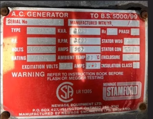 - Frame 634 A rated at 1000 KVA, 800 kw at 105 degrees c
